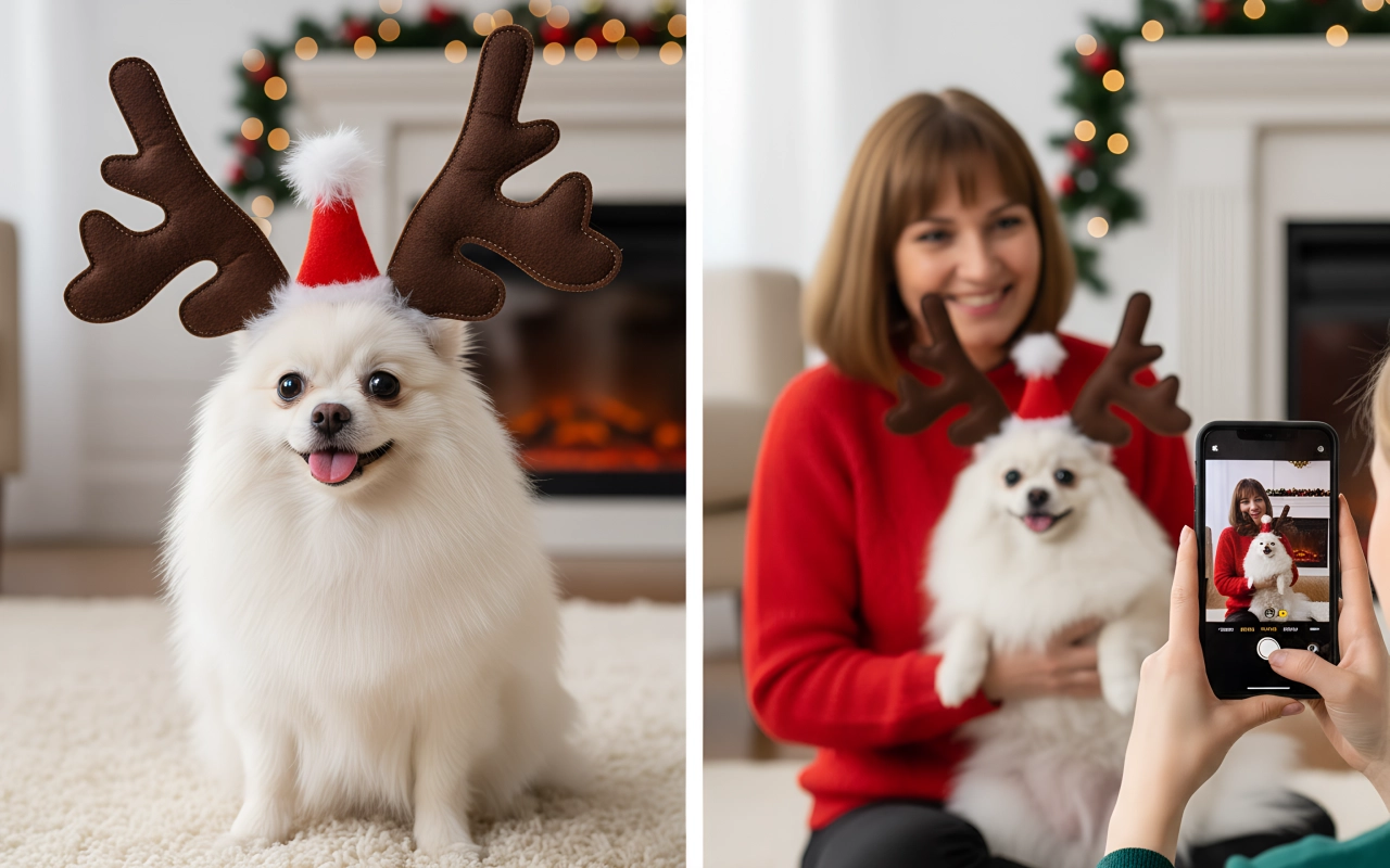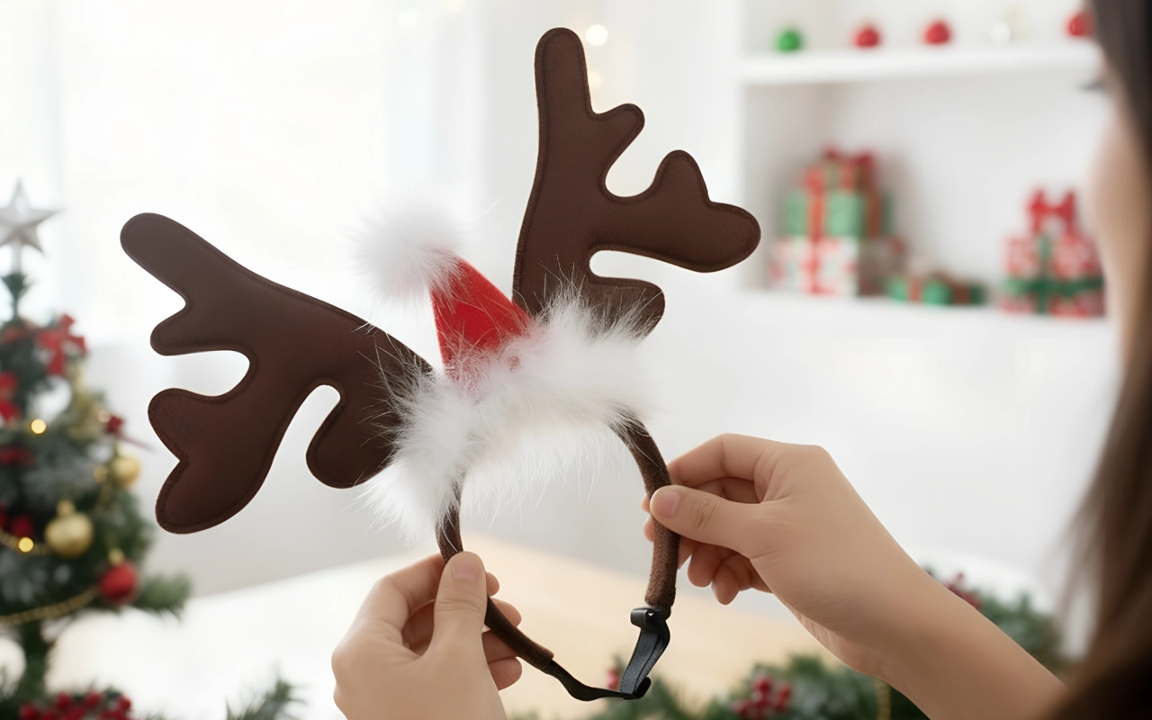 Søte gevir og en fluffy hatt gjør hvert kjæledyrbilde sjarmerende. Hunden din vil sjarmere alle på sammenkomster og familiebilder.