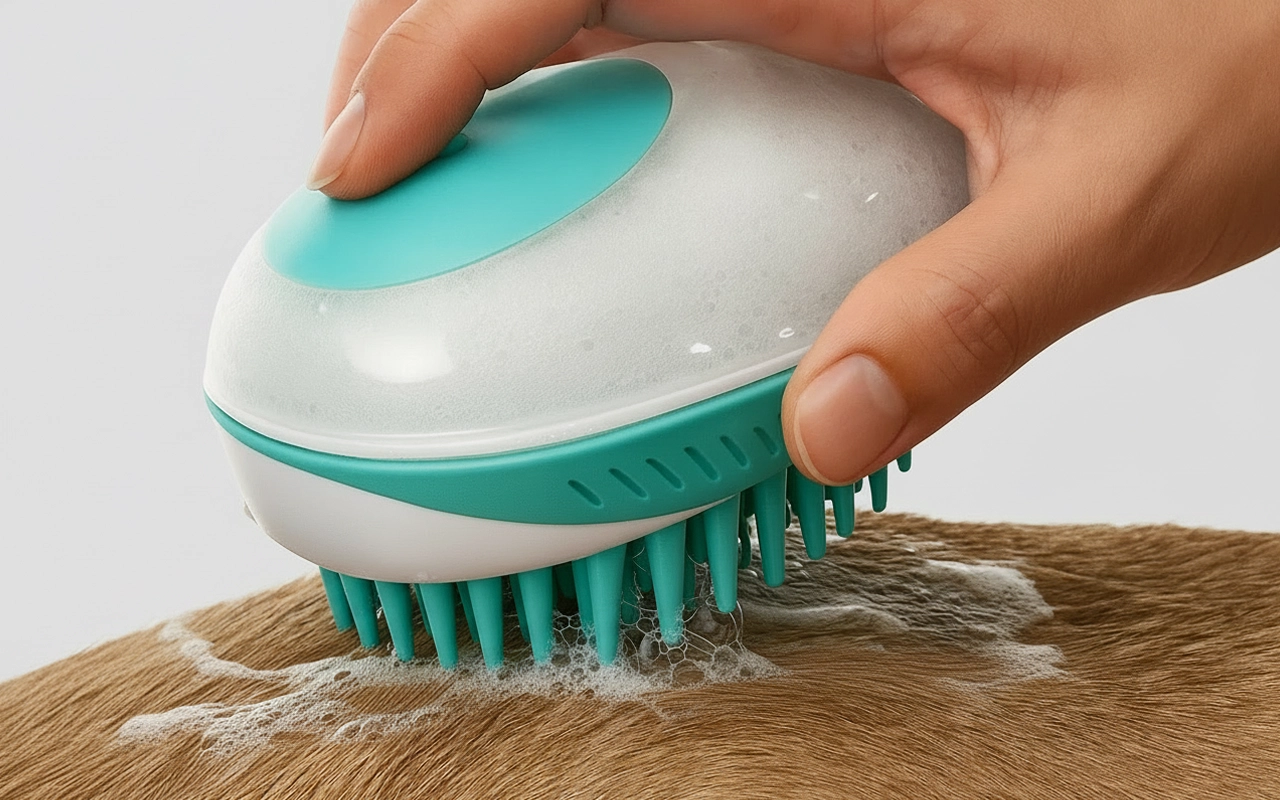 Fleksible børster gir en beroligende massasje under hver vask. Kjeledyret ditt føler seg rolig mens pelsen blir skinnende ren.