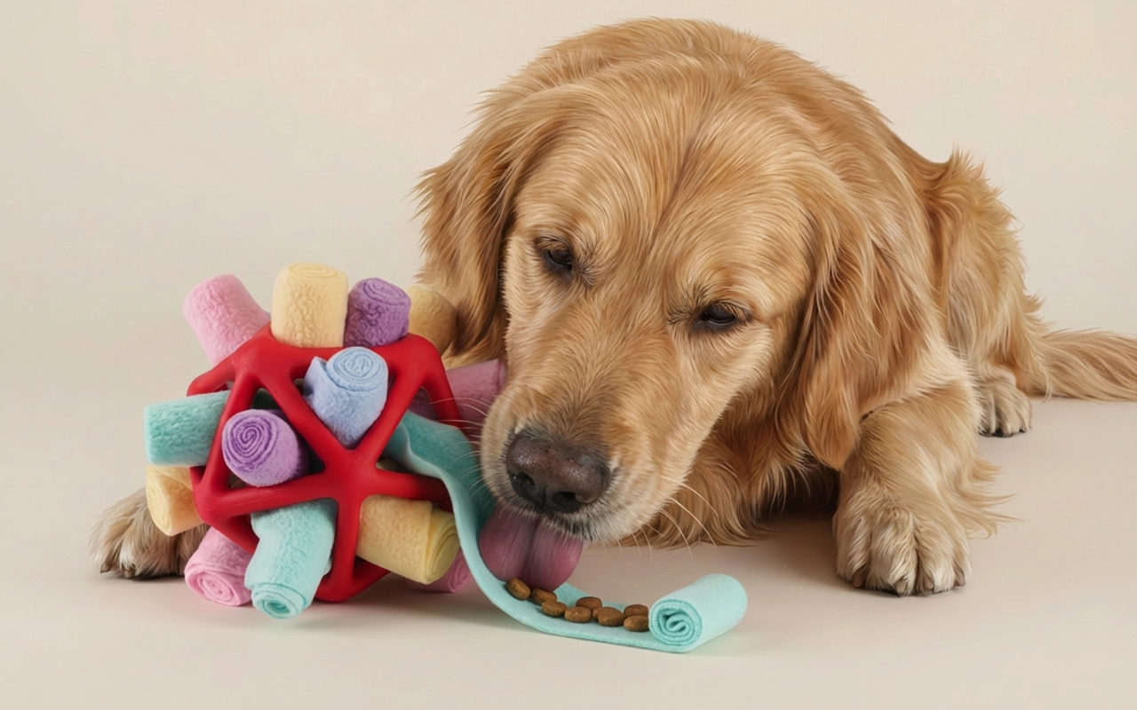 Primdog Snuffle-leke utfordrer kjæledyrets nese og hjerne. Hunder holder seg engasjert ved å jakte på godbiter, noe som styrker deres naturlige ferdigheter.