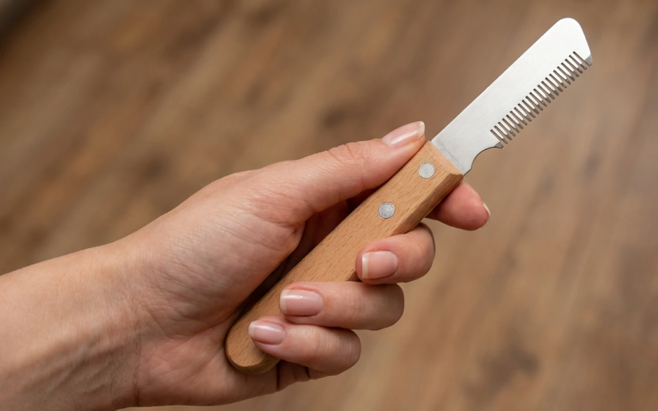 Barkniv for hund – pelsfjerning og pleieverktøy med treskaft