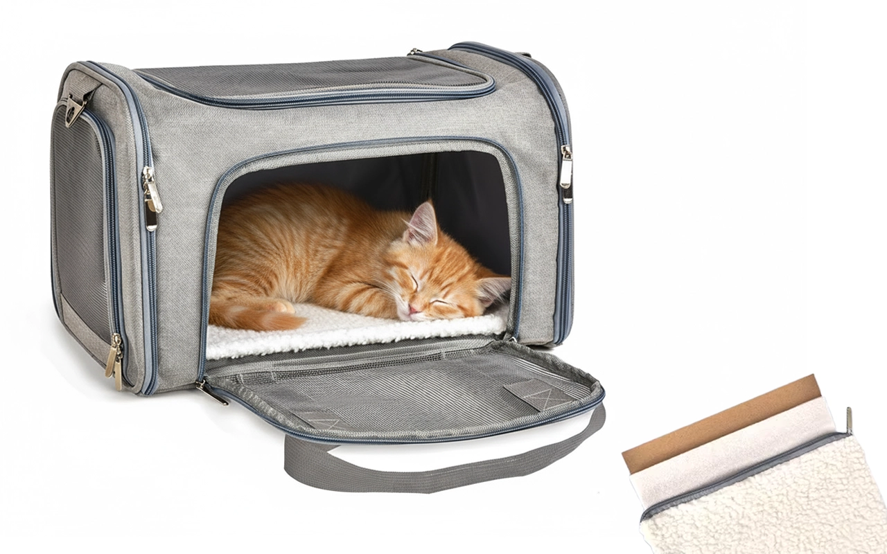 En avtakbar fleecepute gir en myk seng for rolige hviler. Meshpanelene slipper inn frisk luft, slik at kjæledyret kan slappe av under reisen.