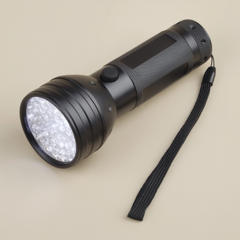 Liten men sterk lommelykt, hundeflekker er lette å se.