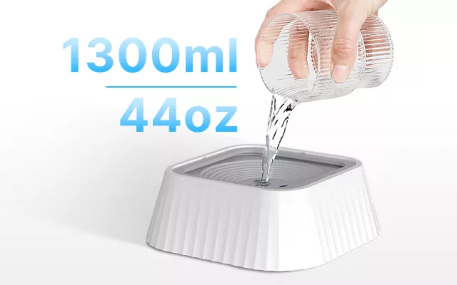 Vi pleide å fylle på skålen så ofte, men denne rommer så mye vann! Hunden min har alltid vann, og det er ikke noe søl i det hele tatt.