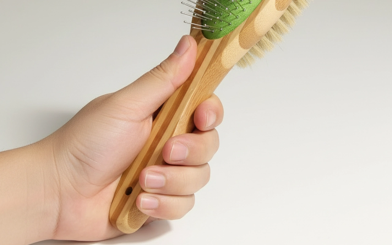 Hold børsten sikkert, selv under lange stelløkter. Bambushåndtaket føles naturlig og ligger stødig i hånden.