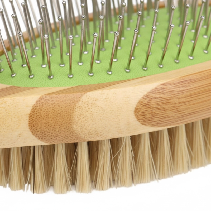 Bytt enkelt mellom bust- og pinneside for full pleie. Hver side tar hånd om floker eller glatter pelsen for en fin finish.