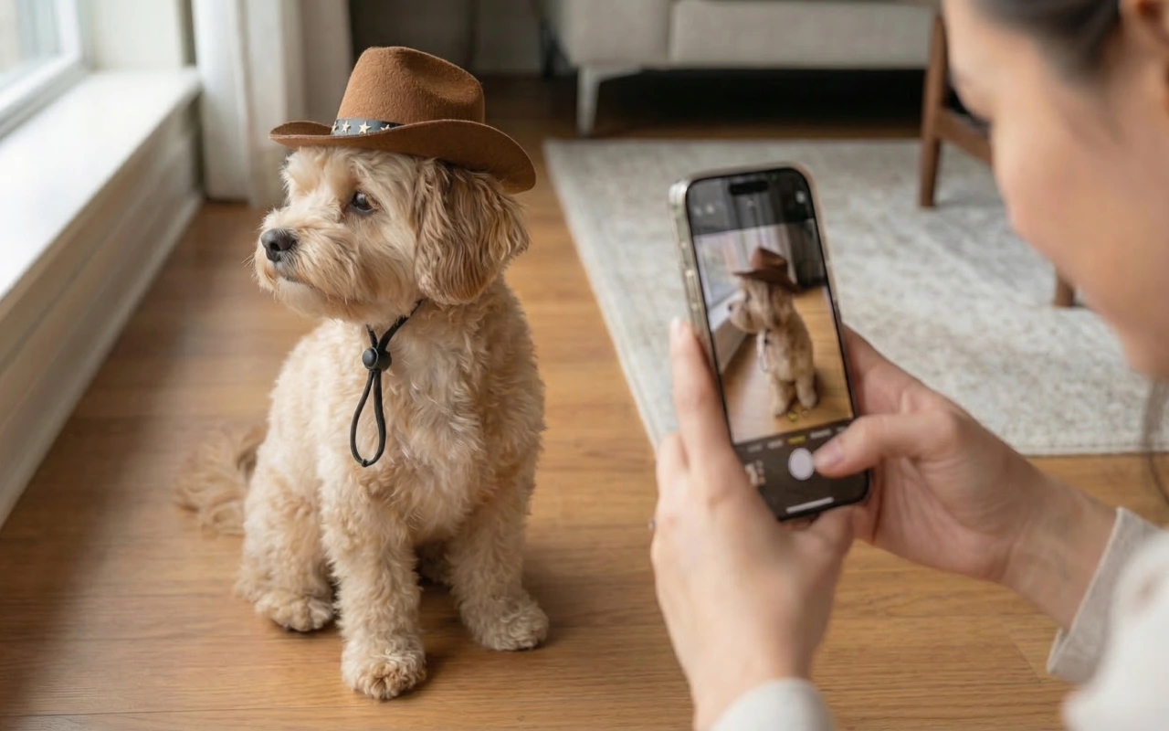 Morsom justerbar cowboyhatt til hund