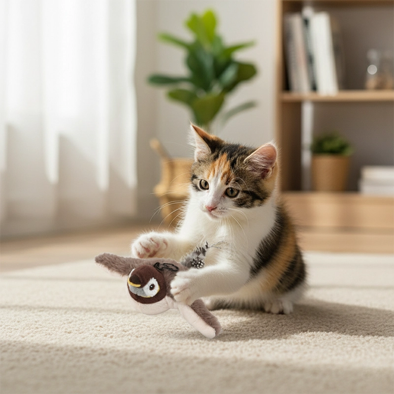 Primdog Dancing Sparrow holder dine pelsvenner engasjerte hver eneste dag. Tre smarte bevegelsesmoduser gir uendelig med lekne øyeblikk for katten. Myke teksturer og ekte melodier hjelper å redusere kjedsomhet og stress raskt. Ladingen er enkel, så leken trenger aldri lange pauser.