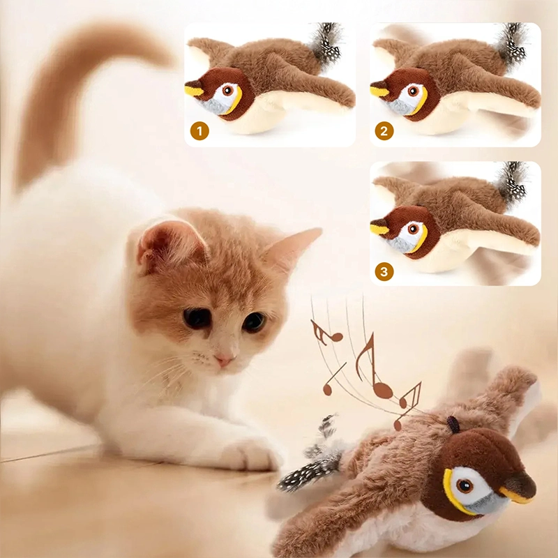 Realistiske melodier og flagrende vinger vekker raskt naturlig nysgjerrighet. Katter holder seg skjerpet, fokusert og glade i timevis innendørs.