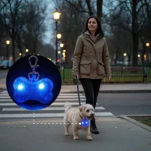 Kveldsturer blir bekymringsfrie med denne smarte, lysende berlokken. Fest Primdog Bone Pendant til hvilket som helst halsbånd på sekunder med den solide klipsen. Flere farger lyser slik at kjæledyret ditt alltid er synlig ute.