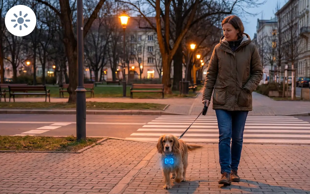 Sterke lys gjør det lettere for andre å oppdage din pelskledde venn. Velg mellom flere iøynefallende farger for hver tur.