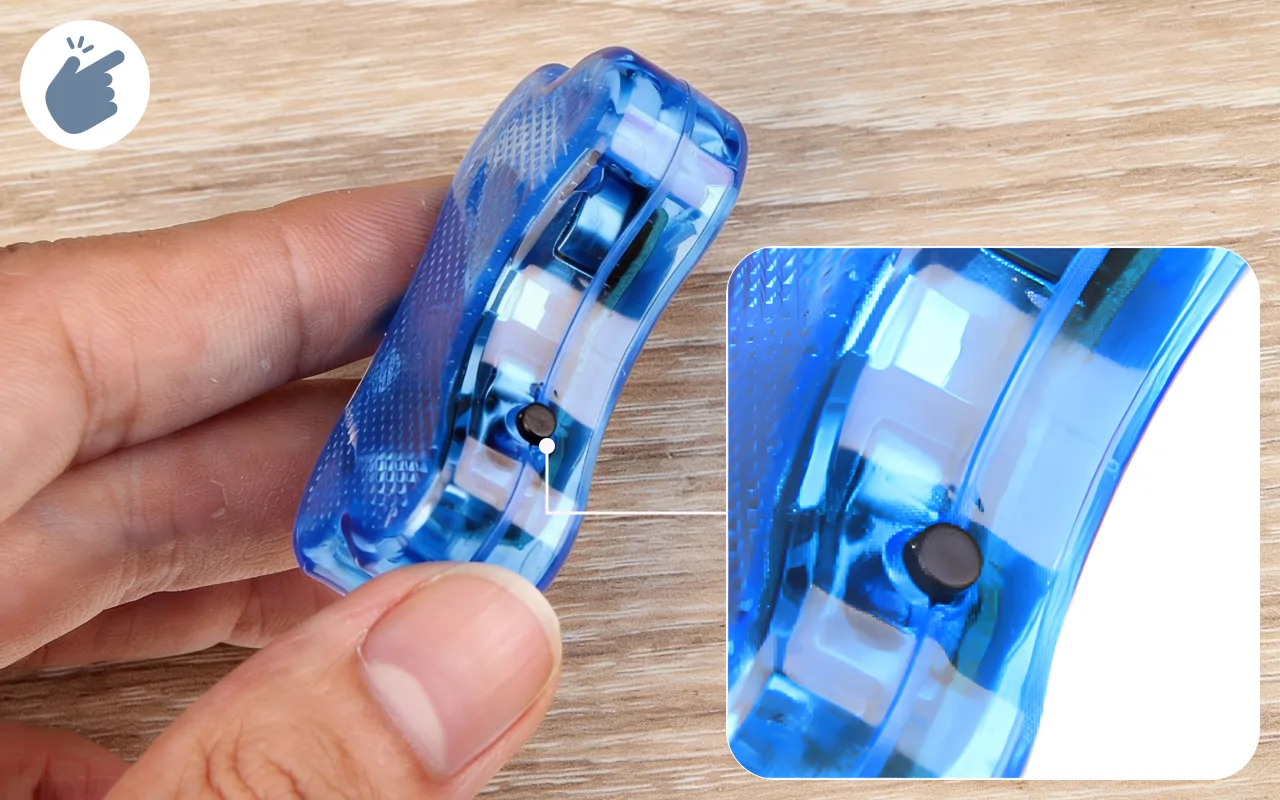 Bytt lysmodus med bare én knapp. Den solide klipsen sikrer enkel og trygg feste på halsbåndet hver gang.
