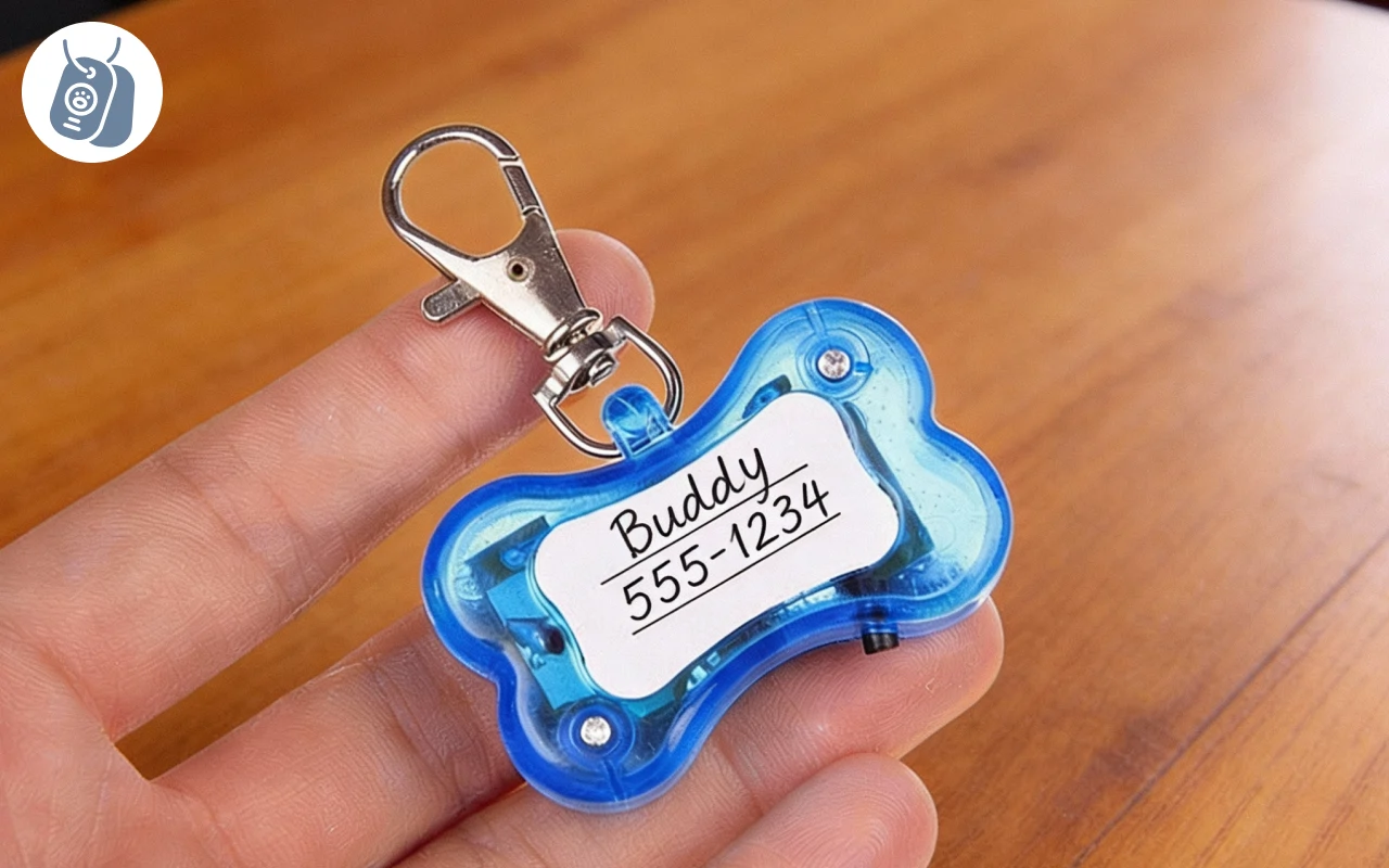 Skriv viktig sikkerhetsinformasjon i det dedikerte feltet. Rask identifisering betyr at bortkomne kjæledyr kommer hjem raskere.