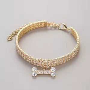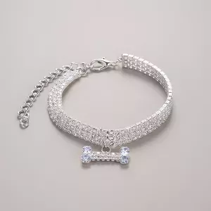 Nydelig hundehalskjede med rhinestone og beinanheng
