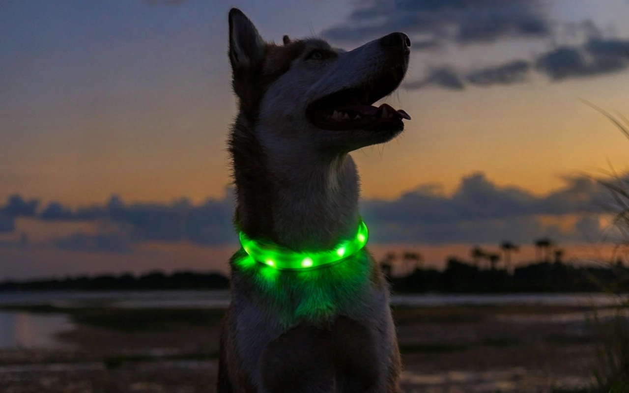 Hunder er synlige i mørket, noe som hjelper til med å forhindre ulykker utendørs. Lyse LED-lys gjør kjæledyret synlig på lang avstand hver gang.