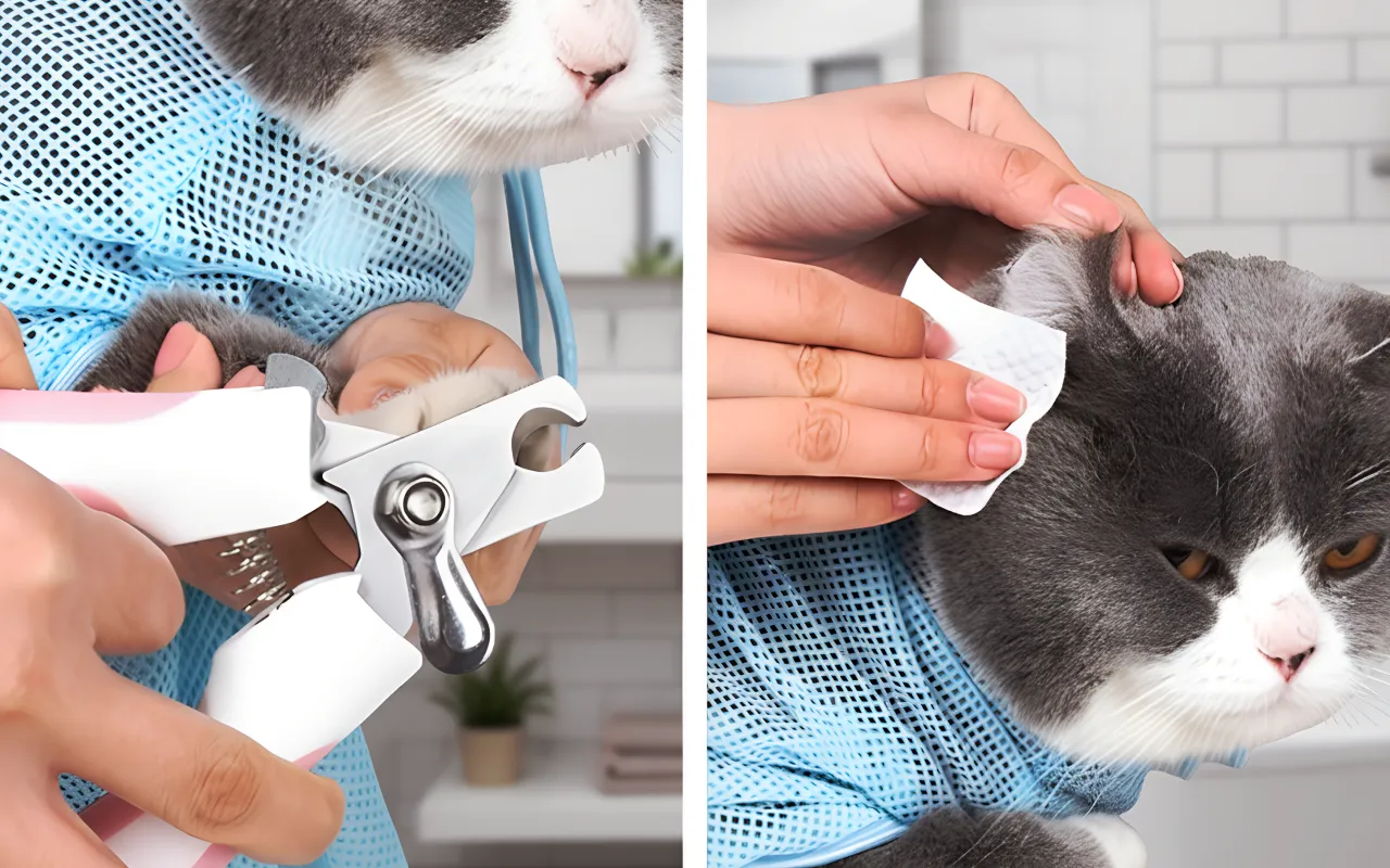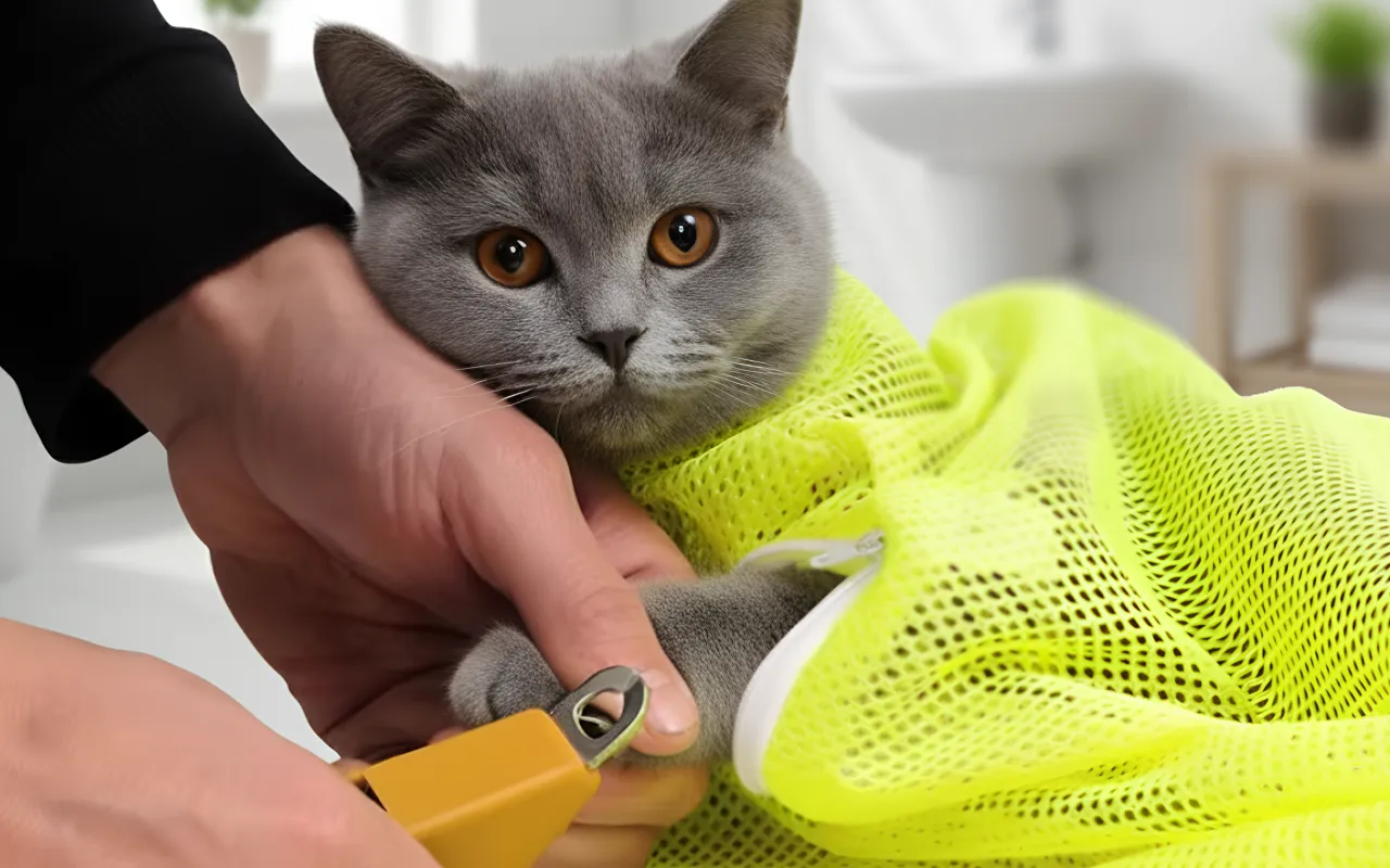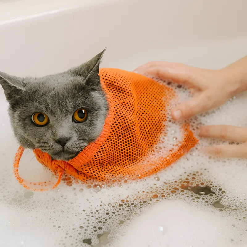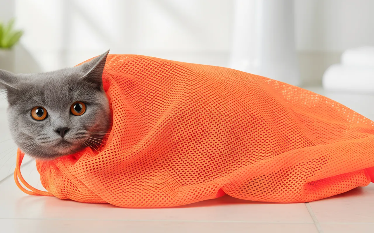 Nettpose til kattestell for vask og kloklipp
