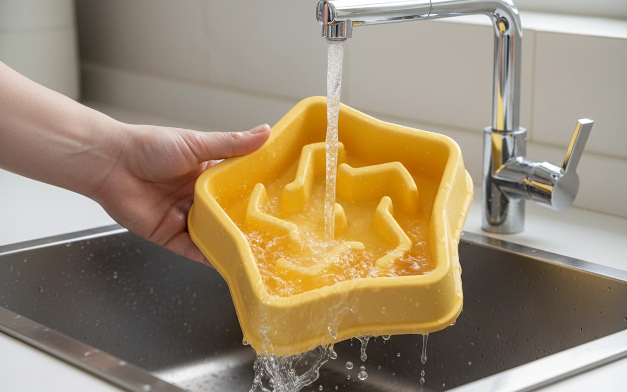 Hunden min elsker denne matskålen! Måltidet tar lenger tid, og det hjelper på fordøyelsen. Jeg putter den i oppvaskmaskinen etterpå og den blir helt ren. Superenkelt.