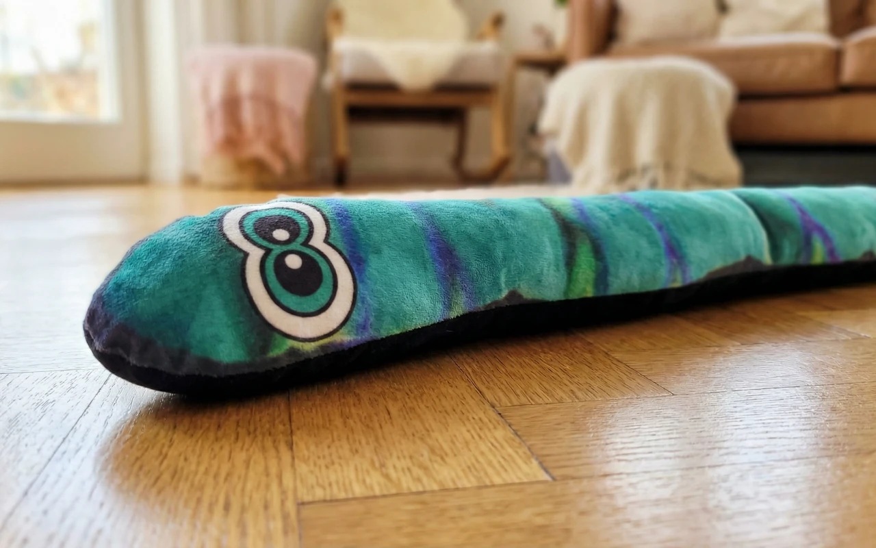 Denne plysjslangen har gitt valpen vår så mye glede! Hun løper rundt med den og koser seg med den hele natten. Den får virkelig halen hennes til å logre.