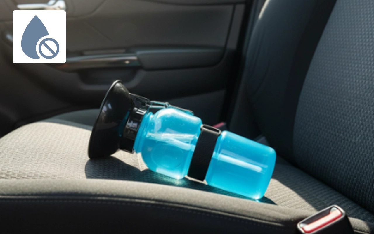 Lekkasje forhindres av den sikre lokk-mekanismen. Vesken og bilinteriøret holder seg tørt når dere reiser sammen.