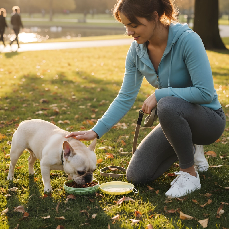Jeg fester skålen på hundens bånd, så turene blir morsommere. Den har aldri sølt, og vasken tar sekunder. Hunden min elsker den.