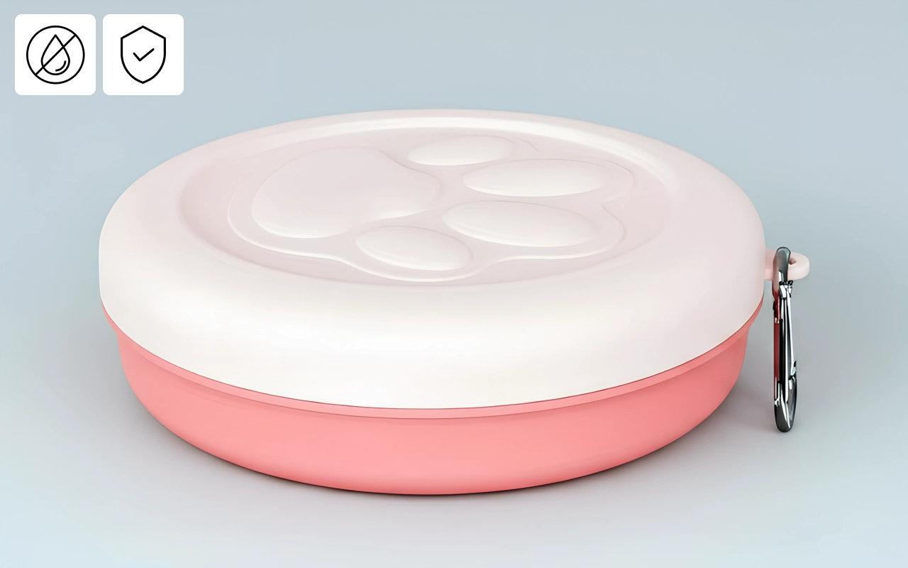 Vi bruker skålen på bilturer og det tette lokket holder tørrfôret friskt. Rengjøring etter snacks går raskt hver eneste gang.