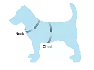 - 2. Legg målebåndet rundt den bredeste delen av hundens bryst.