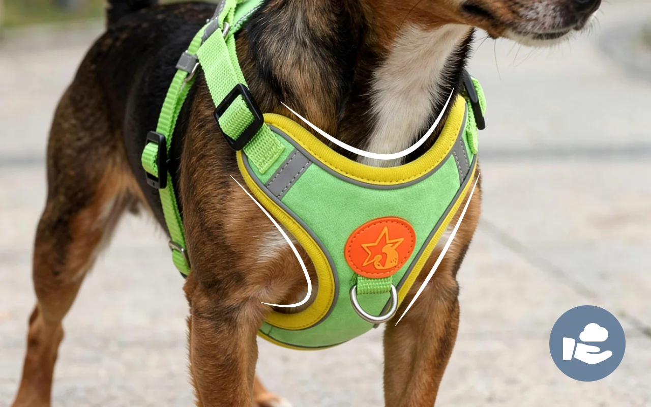 Polstret netting beskytter pels og hud på alle turer. Ingen trykk på nakken gir logrende haler og glade eventyr.