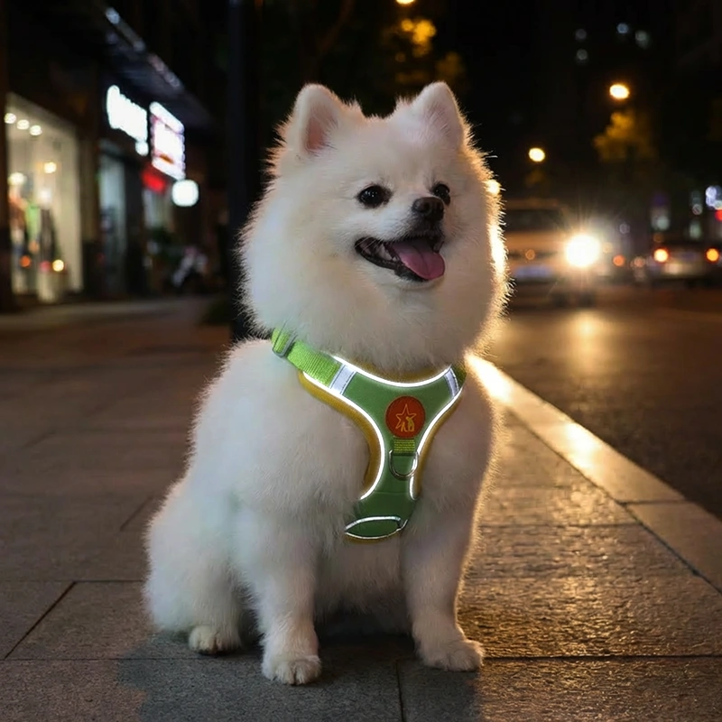 Denne selen har gjort turene med valpen min mye enklere. Passformen er superkomfortabel, og de reflekterende linjene lyser virkelig opp om natten, så vi føler oss trygge.