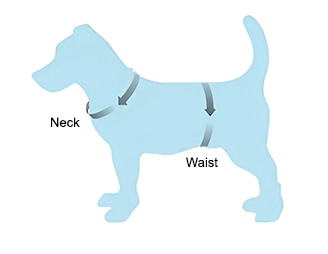 • 1. Mål med målebånd rundt den bredeste delen av hundens bryst.
