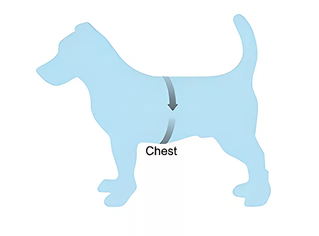 - Legg målebåndet rundt den bredeste delen av hundens bryst.