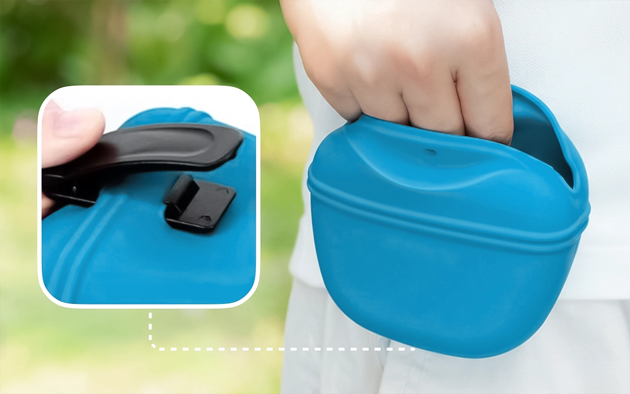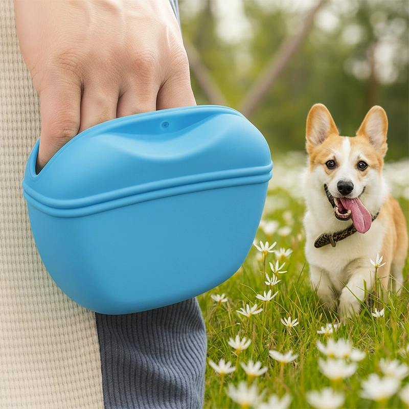 17 omtaler for Silikon godbitpose til hund – treningsbag med belteklips