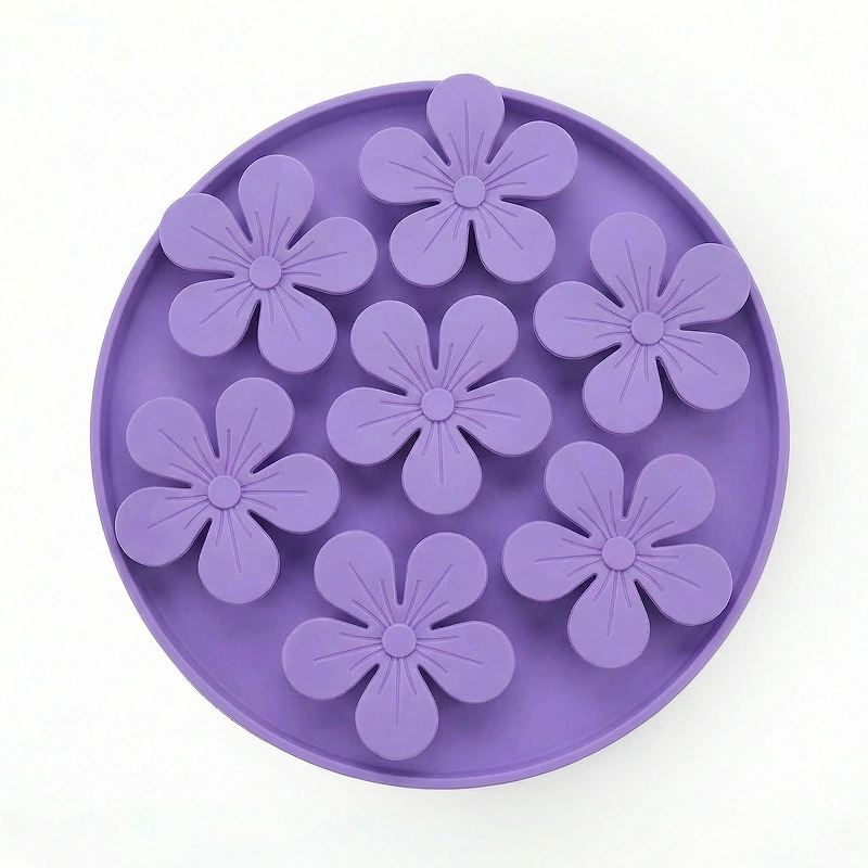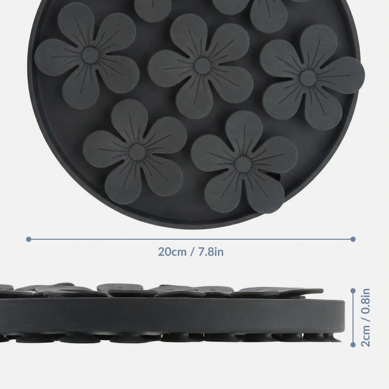 Valpen vår pleide å velte den vanlige matskålen hver gang, men denne matten sitter som limt! Han bruker mer tid på å tygge, som betyr mindre sluking og mindre vond mage. Jeg elsker hvor fargerik og morsom den ser ut.