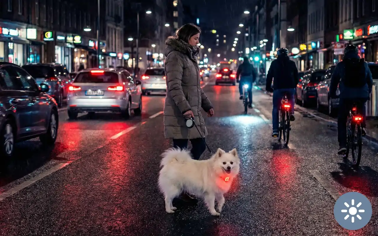 Kveldsturer blir bekymringsløse med Primdog halsbåndvedheng. Sterk belysning gjør kjæledyrene godt synlige og lette å finne ute. Raskt feste gir øyeblikkelig bruk på halsbånd eller bånd.
