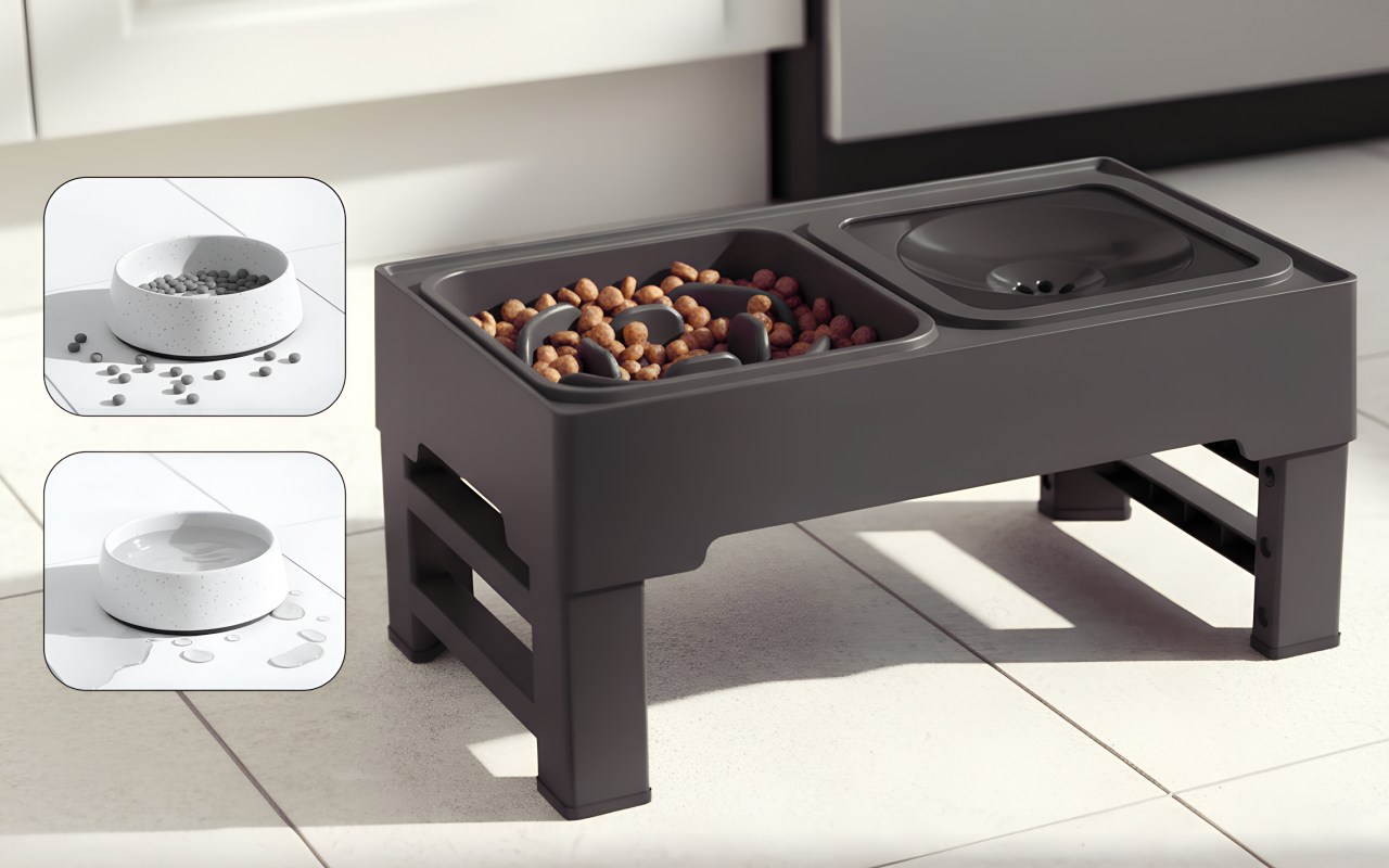 Kjæledyr fortjener et ryddig område til hvert måltid de nyter. Rengjøring tar sekunder takket være smarte deler som enkelt kan tas fra hverandre. Justerbar høyde gir mindre søl og mer komfort hver dag. En sterk og stabil konstruksjon holder skålene på plass, selv for ivrige spisere.