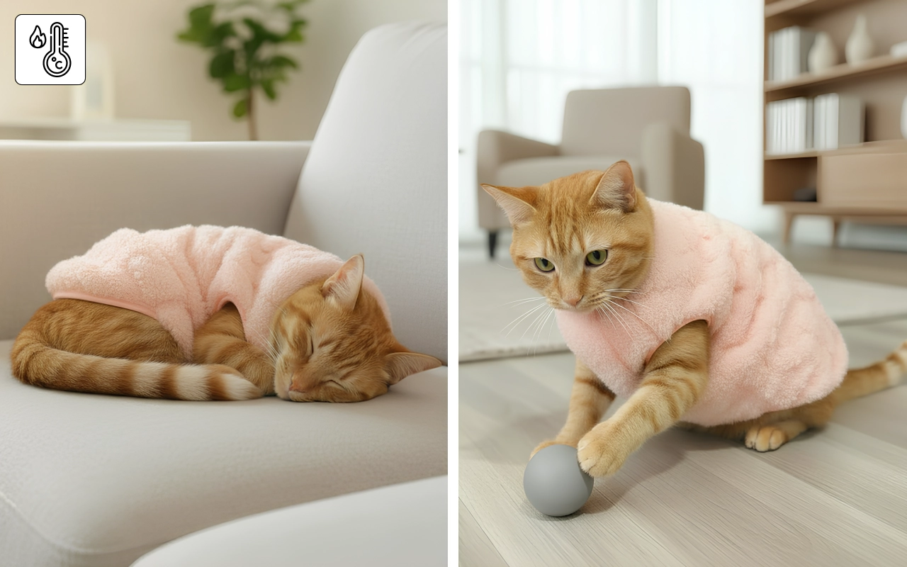 Mykt stoff forhindrer kløe mens kjæledyret har på seg en Primdog-genser. Katten din kan bevege seg fritt uten begrensning eller stress.