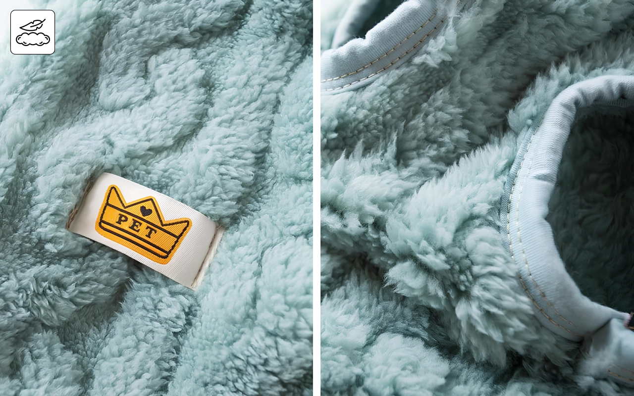 Tykk fleece holder på varmen, slik at kjæledyret aldri føler seg kaldt. Komforten varer hele dagen, enten dere slapper av eller leker sammen.