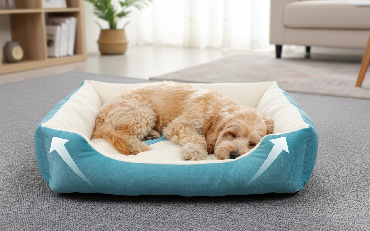 Hevede kanter gir en følelse av trygghet for hvile. Kjæledyret ditt kan kose seg tett mot sidene for ekstra varme.