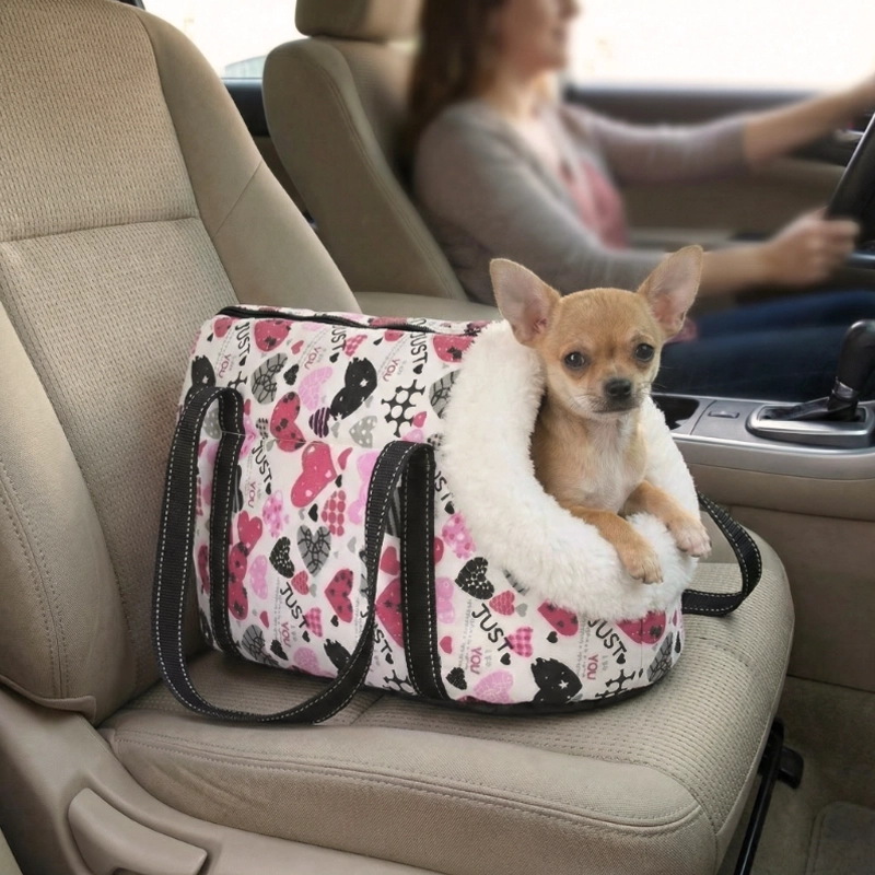 Bærevesken er super til korte bilturer. Hunden min virket veldig komfortabel, og den passer perfekt på fanget mitt. Veldig nyttig i bylivet.