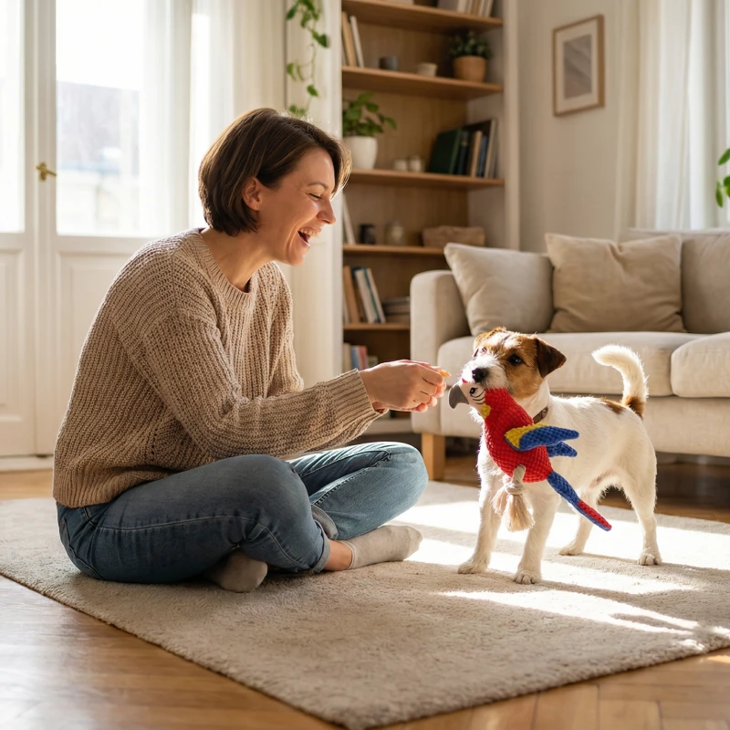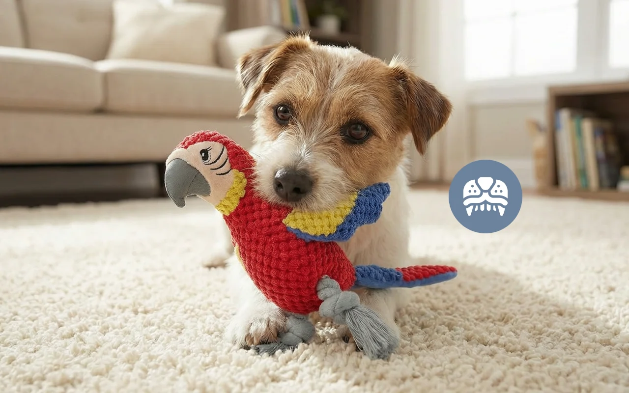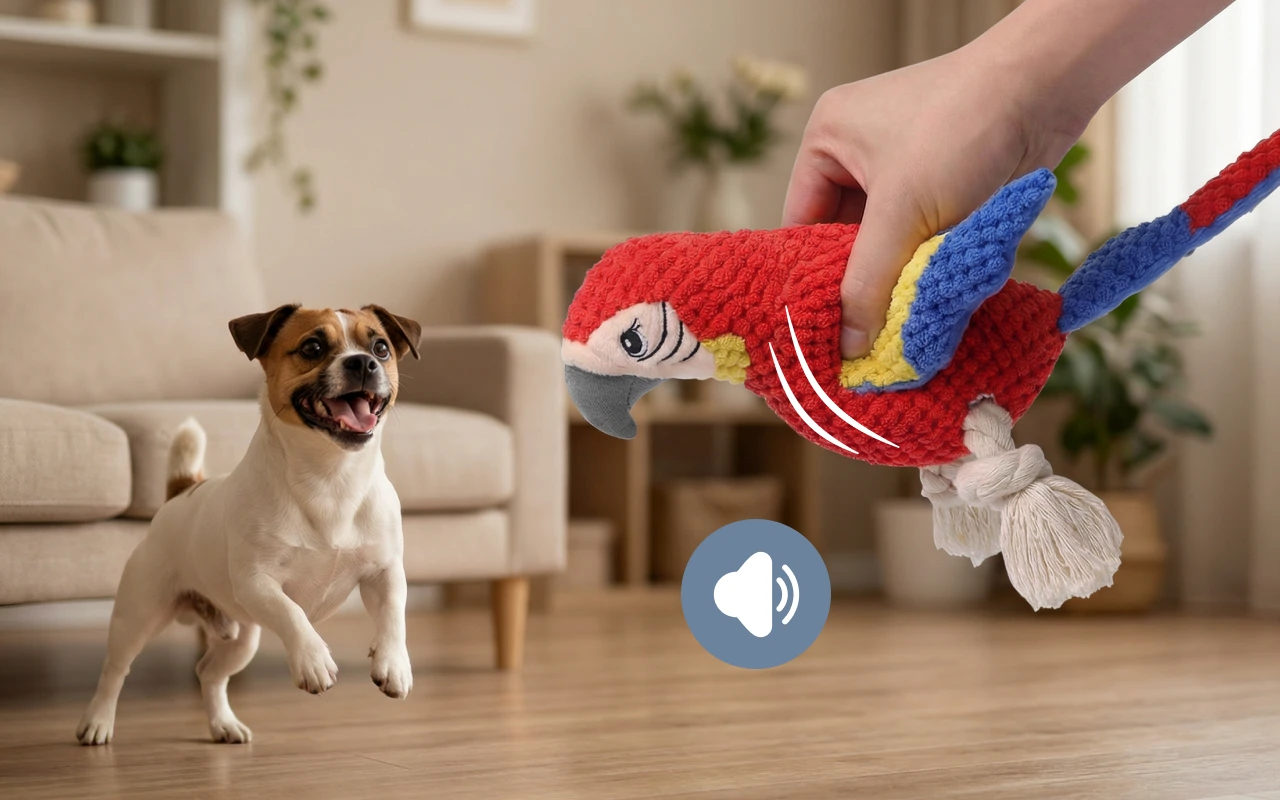 Myk interaktiv pipende papegøyeleke for hunder