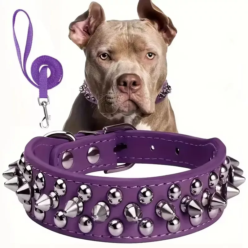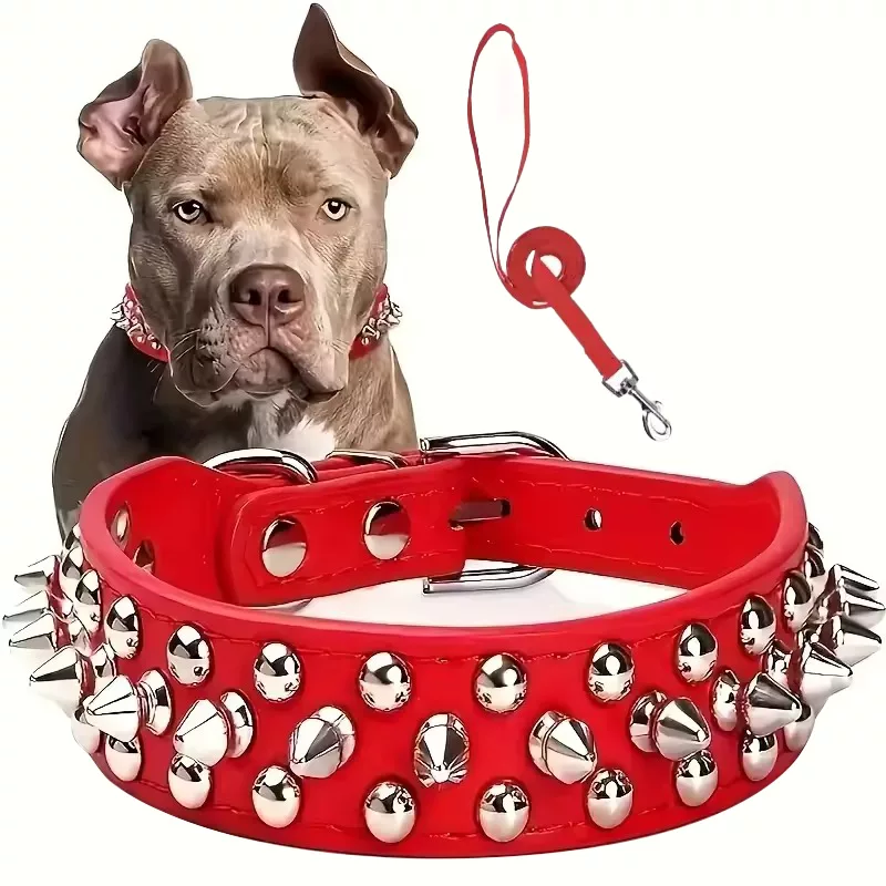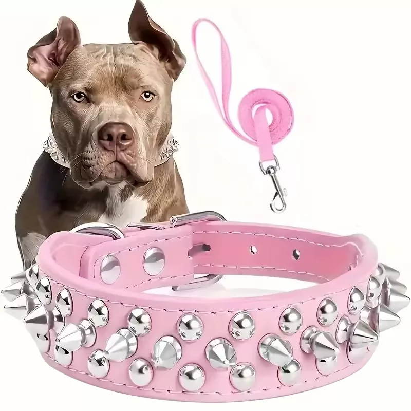 Halsbånd med pigger og bånd til hund