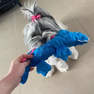 Plysj krokodille-leketøyet er ganske søtt. Hunden min liker å leke med den. Jeg skulle bare ønske den var litt hardere for aggressive tyggere.