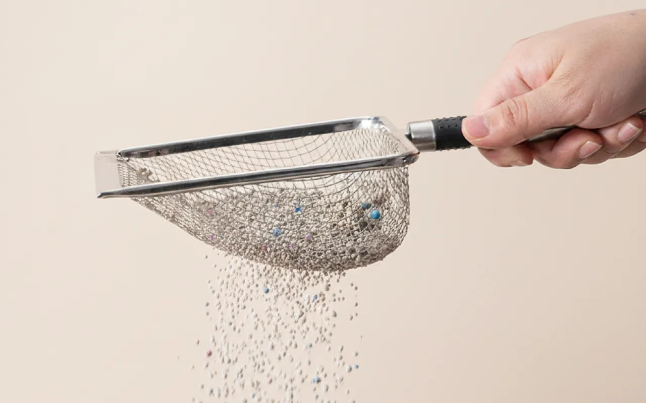 Finmasket design sørger for at kun klumper løftes bort. Du rengjør raskere samtidig som du bruker mindre kattesand hver gang.