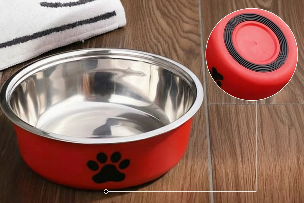 Hundeskål i rustfritt stål med silikonbunn som ikke sklir