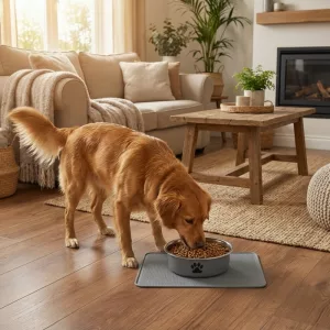Spesiell silikonbunn griper gulvet for stabil mating. Kjæledyr nyter måltidene uten å skli eller søle rundt i rommet.