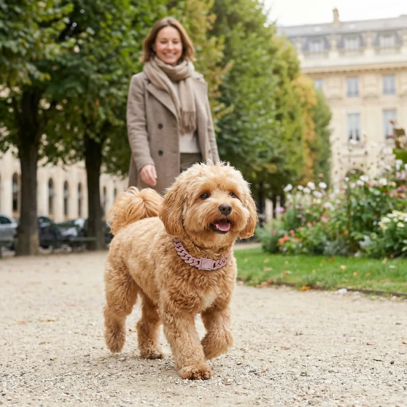 Halskjedet gjorde hunden min til stjernen i parken! Det passer akkurat og trekker ikke i pelsen hans. Glansen ser fortsatt ny ut selv etter flere uker.