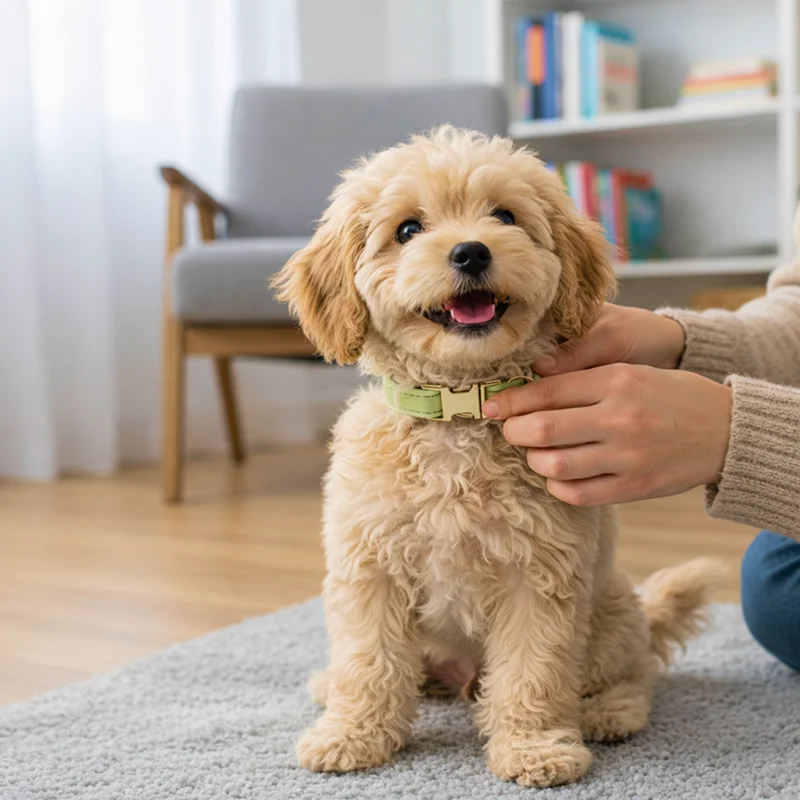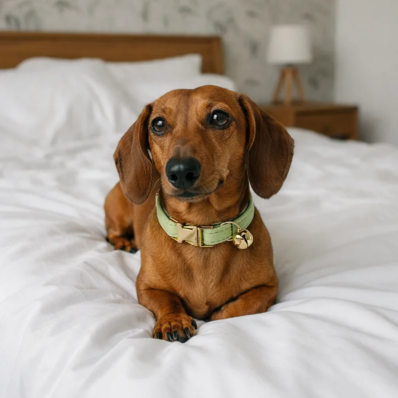 Primdog kombinerer elegant stil og skånsom omsorg. Den justerbare passformen forhindrer ubehag eller gnaging rundt halsen. En liten bjelle hjelper deg å holde din nysgjerrige venn trygg innendørs.