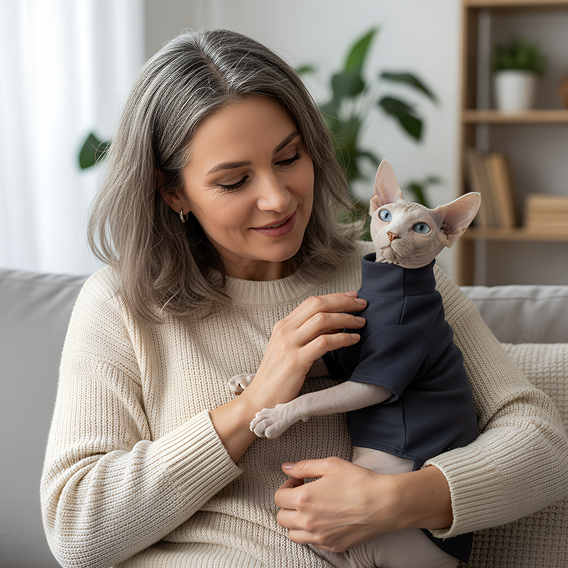 Myk bomull skjermer sensitiv hud mot trekk og kulde. Katten din holder seg koselig inne selv når temperaturen synker ute. Primdog kattesweater hjelper å forhindre skjelving i de kaldere månedene. Designet for enkel bevegelse, slik at kjæledyret føler seg komfortabelt hver dag.