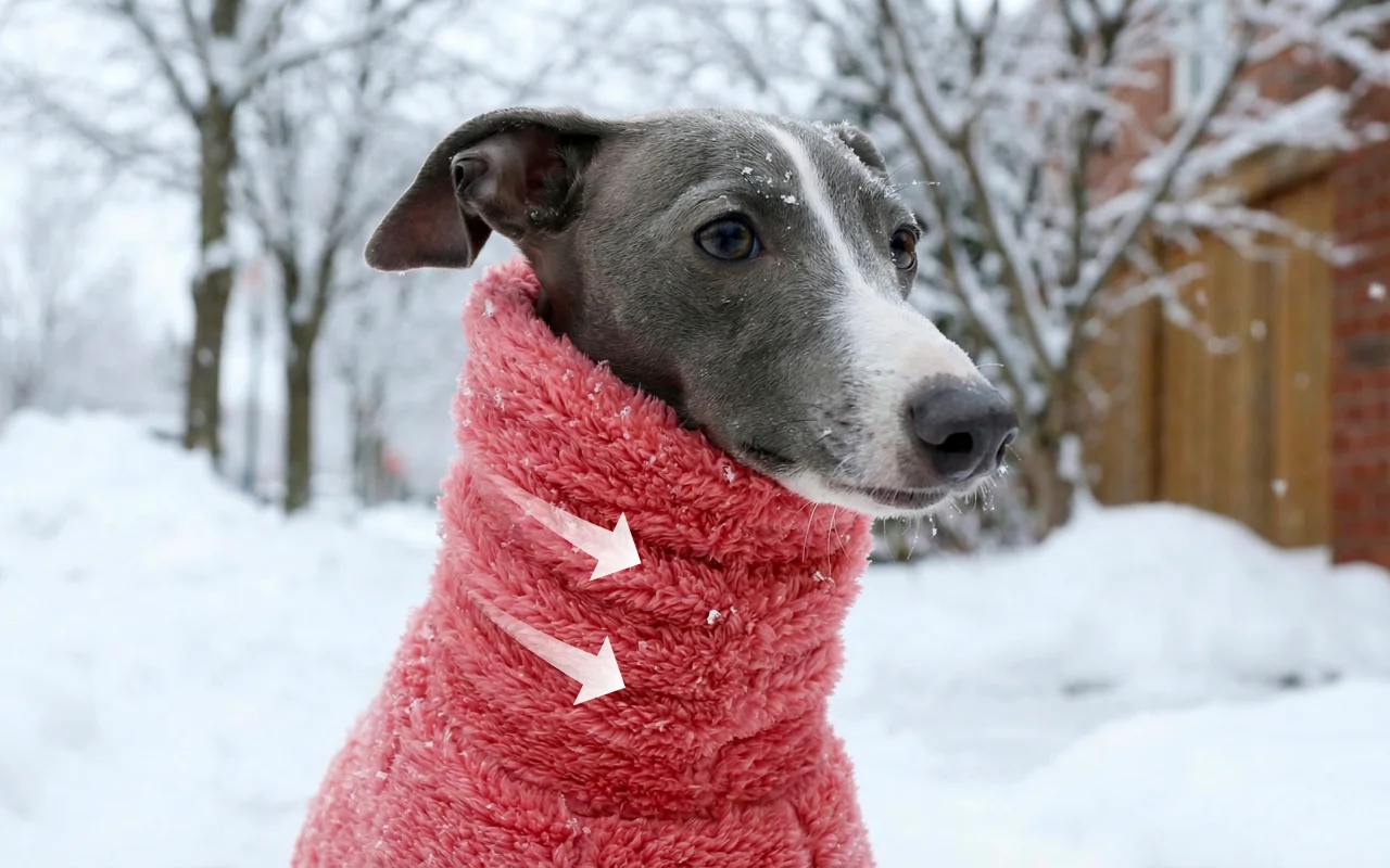 Den høye kragen skjermer følsomme halser fra bitende vind. Full kroppsdekning holder pelsen ren og fri for smuss.