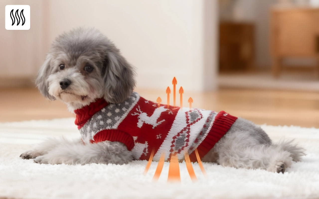 Tykk strikk blokkerer kalde trekk fra å nå sensitiv pels. Kjæledyr nyter varme og komfort både ved lek og hvile.