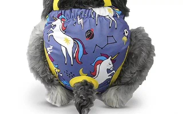 Hunden min bruker denne bleien under løpetiden sin, og den sklir aldri av. Veldig enkel å vaske også! Ingen rare lukter og gulvene mine holder seg rene.