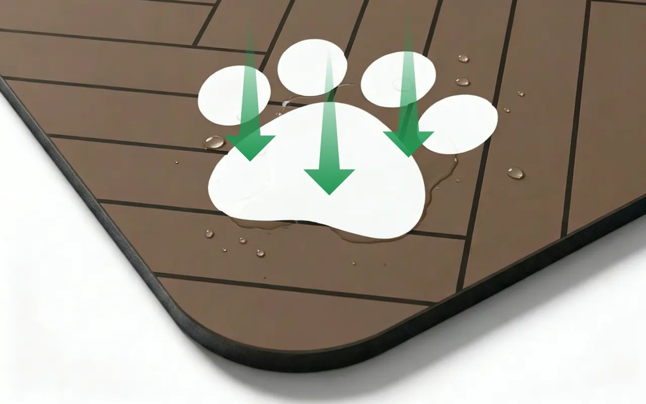 Absorberer raskt væskesøl og etterlater ingen våte merker. Gulvet holder seg friskt og tørt, selv når kjæledyrene søler.